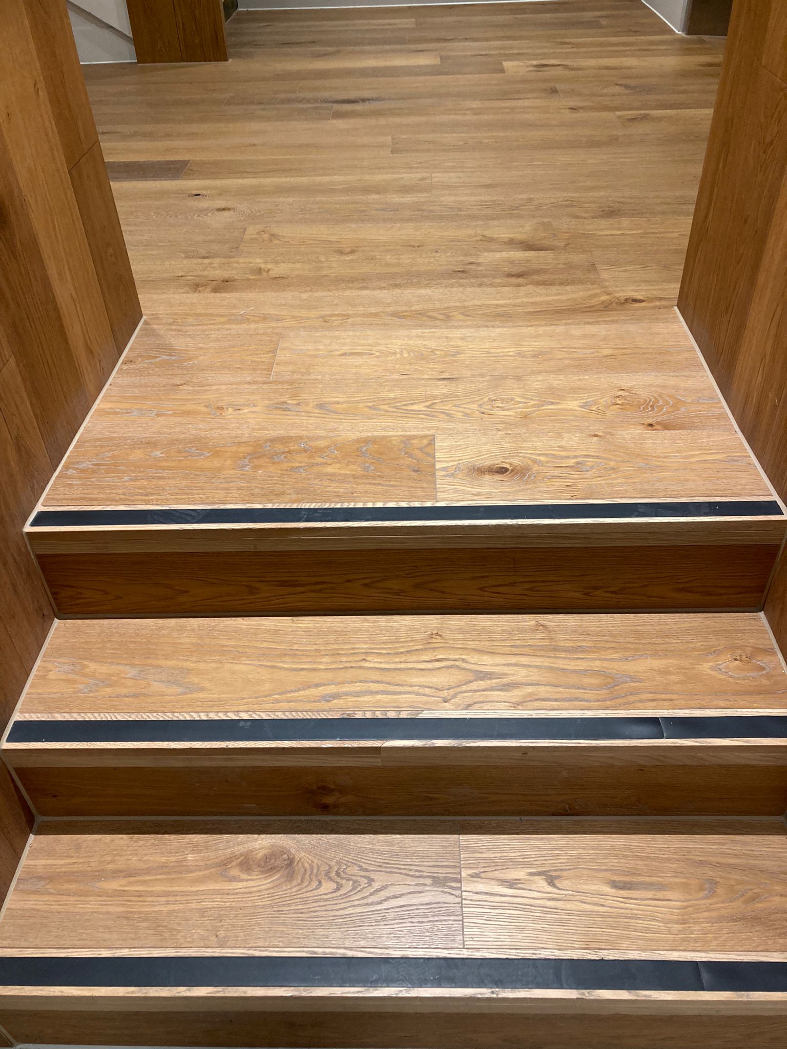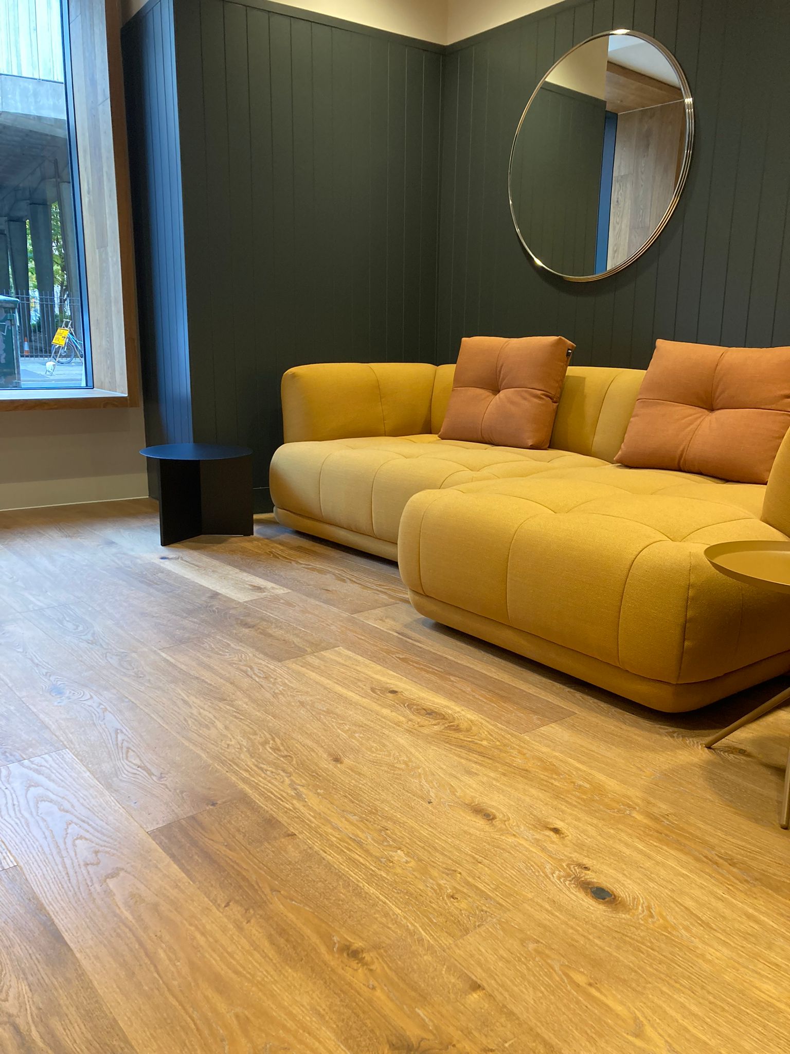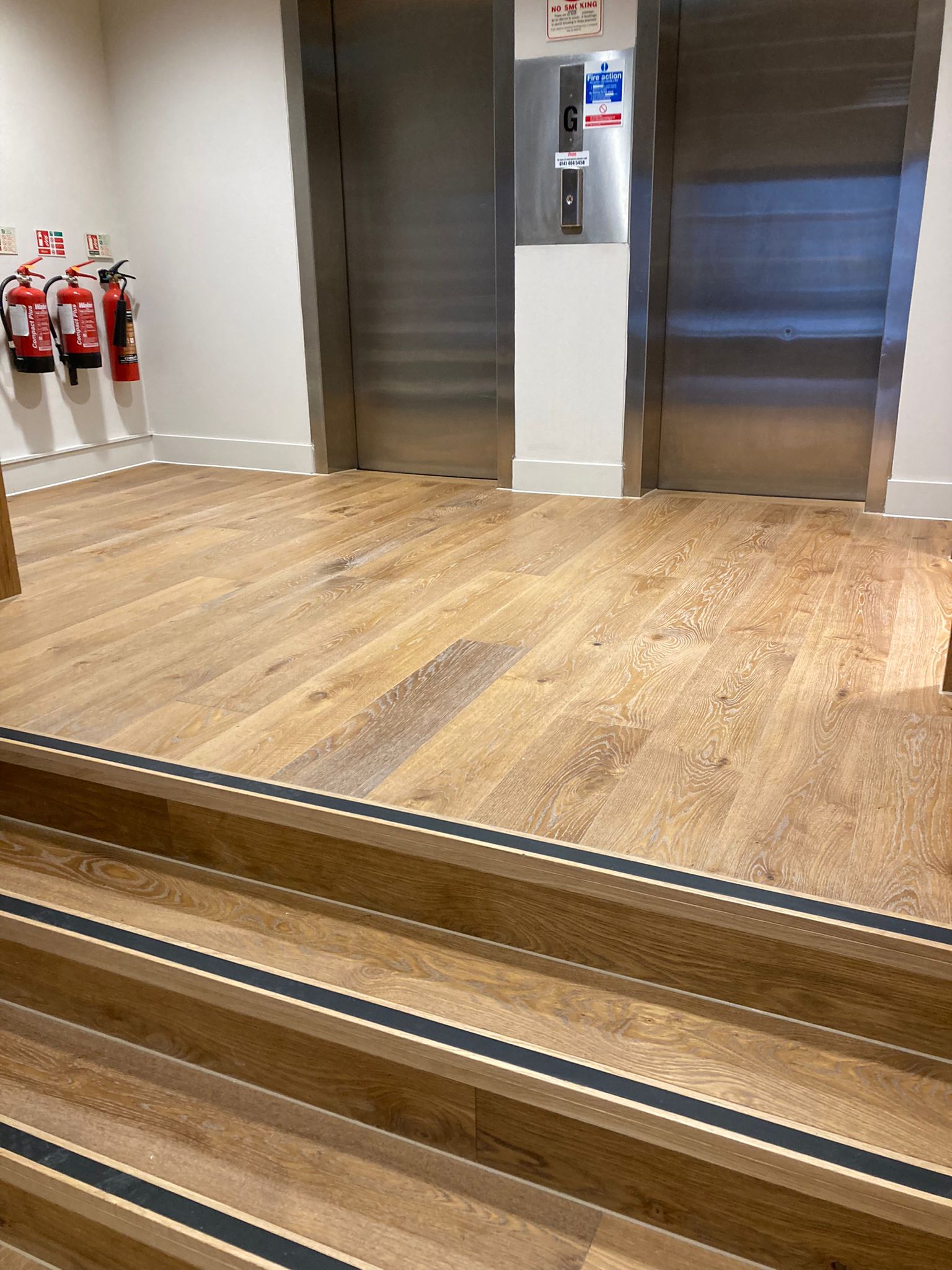 Atkinson & Kirby’s bespoke Pinzon Oak flooring was chosen to be fitted throughout the office space. Chosen for its rustic appeal, it features a textured surface with rich tones, natural knots, and a brushed finish that complements the modern design. The flooring’s durability and bespoke stair nosing’s ensure it meets the demands of a commercial setting while adding warmth and character to the interiors.